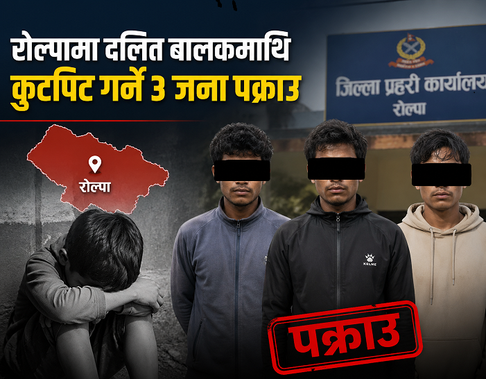 काठमाडौं । रोल्पाको गंगादेव गाउँपालिका–५ फुल्बासमा १० वर्षीय बालक खगेन्द्र बिकमाथि कुटपिट गरिएको घटना सार्वजनिक भएको छ। स्थानीय भीमबहादुर खत्रीले...