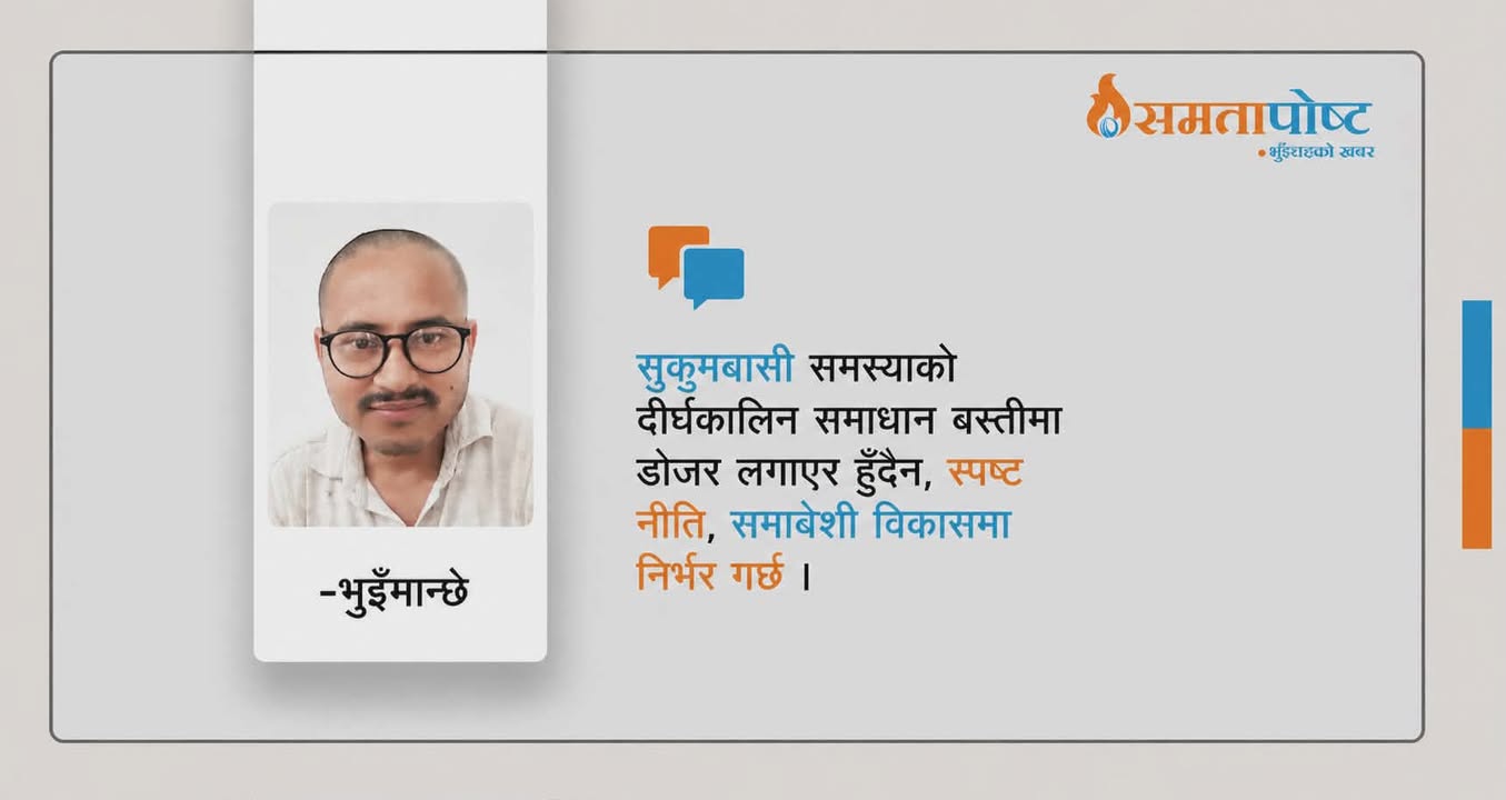 विराटनगर । सरकारले सुकुमबासी बस्तीहरूमा डोजर चलाएकोप्रति नेपाल बसोबासबस्ती संरक्षण समाजले जिल्ला प्रशासन कार्यालयमार्फत् ध्यानाकर्षण पत्र बुझाएको छ । सुकुमबासीको विषयमा छानबिन नगरी प्रहरी प्रशासन लगाएर ज्यादती गरेको भन्दै सरकारलाई...
