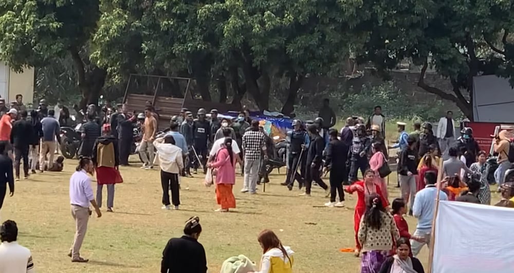 पोखरा । कोटिहोमको भूमिपूजन रोक्न खोज्दा पोखरामा नगर प्रहरी र...